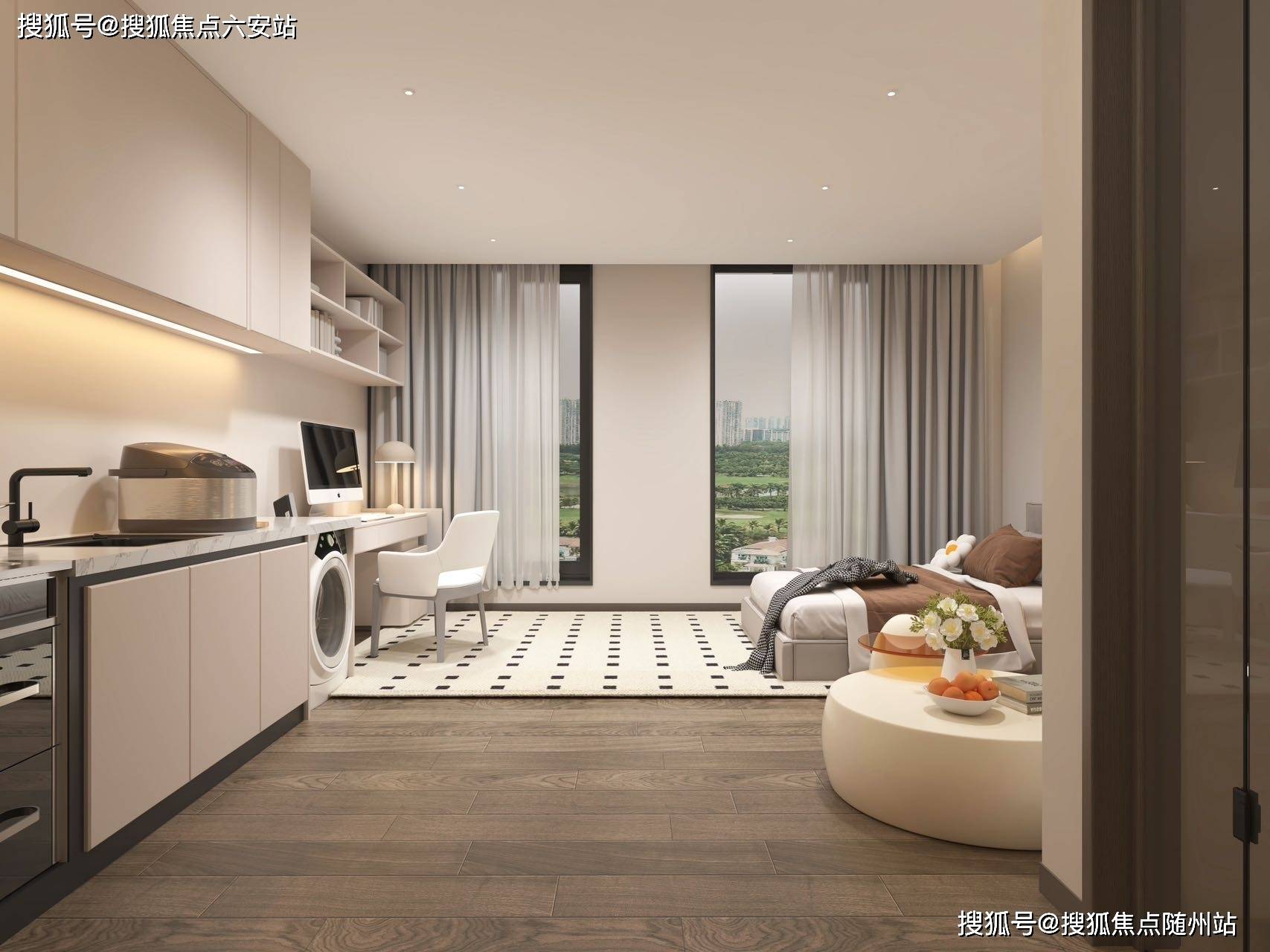 项目从打22-45平方米的精拆公寓,支撑8-10年包租和谈,将来芯寓阿里、同花顺等企业带来的高净值租客需求。